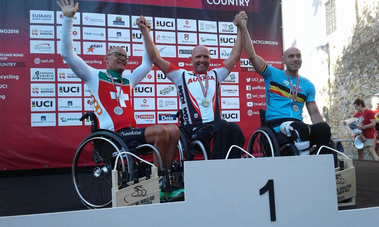 Der erste Tag verlief ausgezeichnet. Paralympics-Starter Wolfgang Eibeck (Klasse MC5) fuhr beim Zeitfahren ein konstantes Rennen und sicherte sich die Goldmedaille. Ebenfalls Rio-Fix-Starter Walter Ablinger (MH3) belegte den ausgezeichneten 2. Platz hinter seinem ewigen Konkurrenten, dem Schweizer Heinz Frei. Ernst Bachmaier (MH1) kann an seine bisherigen Saisonleistung anknüpfen und bestätigt seine starke Form mit den 3.Platz ebenfalls im Zeitfahren. Wolfgang Schattauer (MH2) sowie Andreas Zirkl (MC1) erzielten beide den überraschenden 4-Platz in ihren Klassen. Georg Schwab (MC1) wurde 7., während sich Tom Frühwirth trotz technischer Probleme den 8. und Alex Gritsch den 10 Platz in der Klasse MH4 belegten.