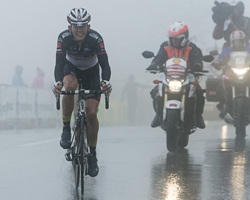 Dann begann der 18,3 Kilometer lange Anstieg zum Hochtor mit einer durchschnittlichen Steigung von 7,64 Prozent. Der französische Cofidis-Profi Yohan Bagot und der Neuseeländer Jesse Sergent (Trek Factory Racing) setzten sich aus der Spitzengruppe ab, dahinter nahmen U23-Staatsmeister Mühlberger und Giro-Etappensieger Pavel Brutt die Verfolgung auf. Brutt fiel zurück und der stark fahrende Niederösterreicher Mühlberger schaffte den Anschluss an das Spitzenduo. Zu Dritt sprinteten sie bei Temperaturen um den Gefrierpunkt und Schneefall um den Titel des "Glocknerkönigs", der mit einer von der GROHAG gesponserten Prämie in Höhe von 2.504 Euro dotiert ist. Die größten Kraftreserven am Hochtor bei der "Wiesbauer"-Bergwertung der höchsten Kategorie hatte schließlich der erst 20-jährige Gregor Mühlberger, der sich zum ersten heimischen Glocknerkönig seit Gerrit Glomser 2008 kürte! Ein weiterer großer Erfolg des großen Talentes und U23-Staats- und Zeitfahrmeister Mühlberger, der heuer bereits die Karpaten-Rundfahrt für U23-Fahrer gewann. Übrigens, die Auffahrt von Heiligenblut wurde heute zum 30. Mal gefahren, jetzt ebenso oft wie von der Salzburger Seite Ferleiten.